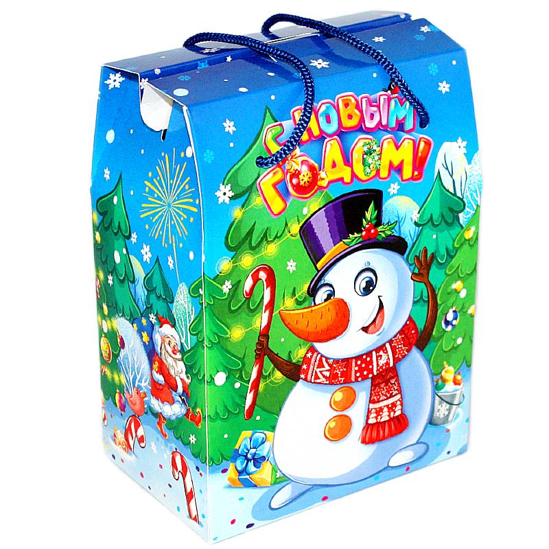 Сладкий новогодний подарок в картонной упаковке весом 800 грамм