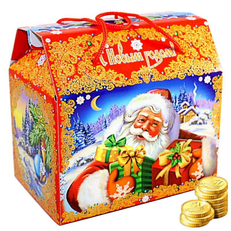 Детский подарок на Новый Год в картонной упаковке весом 1000 грамм